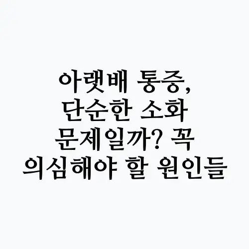 아랫배 통증은 많은 사람들이 경험하는 흔한 증상 중 하나입니다. 그러나 단순한 소화 문제일까? 라는 질문은 이 통증의 원인을 파악하는 데 있어 매우 중요한 부분입니다. 아랫배 통증의 원인은 다양할 수 있으며, 소화관의 문제뿐만 아니라 여러 다른 요인들도 작용할 수 있습니다. 따라서 이 통증의 원인을 정확히 이해하고, 의심해야 할 다양한 가능성에 대해 알아보는 것이 중요합니다. 본 글에서는 아랫배 통증의 여러 원인에 대해 상세히 설명하며, 꼭 의심해야 할 원인들을 살펴보겠습니다. 이를 통해 독자들이 자신의 증상을 이해하고, 필요 시 적절한 조치를 취할 수 있도록 돕고자 합니다.